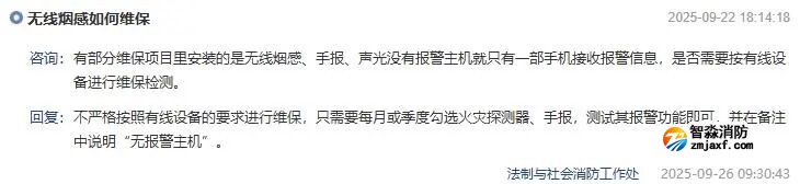 有部分維保項目里安裝的是無線煙感、手報、聲光沒有報警主機就只有一部手機接收報警信息,是否需要按有線設(shè)備進行維保檢測。